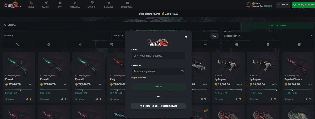 Der Einstieg auf CSGORoll ist bewusst unkompliziert gehalten. Du meldest dich einfach über dein Steam-Konto an, legst dein persönliches Profil an und kannst direkt unser Interface erkunden.